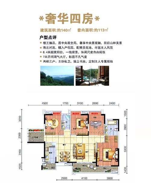雄踞中央景观中轴核心位置,瞰10万亩山林和3公里纯天然溪流,山、林、水、园四重无敌景观,8米阔景休闲阳台,