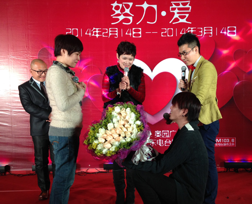 活动当天,由广东电台城市之声多位靓声主持人现场主持的“努力·爱”浪漫情人节活动吸引了约4万人次参与,广东南方卫视著名主持人“细龟”更是受到了观众的热情追捧。现场不仅邀请到韩小薰等新生代歌手献唱情歌,更设置了温馨甜蜜的游戏环节,给情侣、夫妻和家庭成员之间搭起沟通和传递爱的桥梁。活动将近尾声,突然有位观众找到工作人员寻求帮助,原本他看了情人节活动之后大有感触,希望通过这个舞台让更多人一起来见证他们的神圣时刻,手捧大束玫瑰的王先生走上舞台的那一刻,MK官方网页版广场瞬间化身浪漫求婚现场。