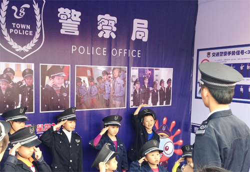 小朋友们在认真的扮演巡警