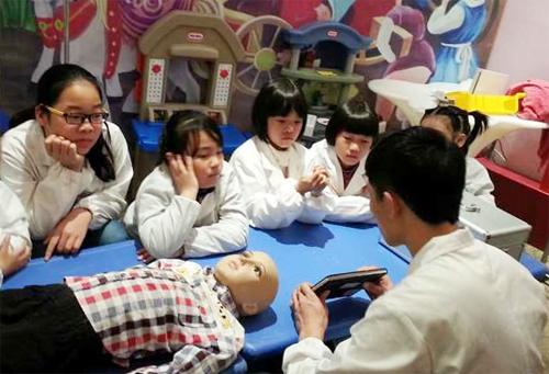小朋友扮演婴儿护理员,学习如何护理幼儿