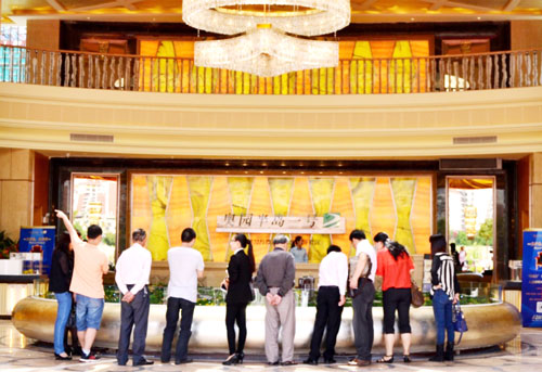 (2014年5月1日——梅州)广东省梅州市城央70万方滨江半岛国际社区——梅州MK官方网页版半岛一号千万级销售中心对外开放,“五一MK官方网页版三天乐”现场互动游戏同步启动,不少梅州市民早早来到活动现场一睹梅州最具品质感的销售中心的真实面容。