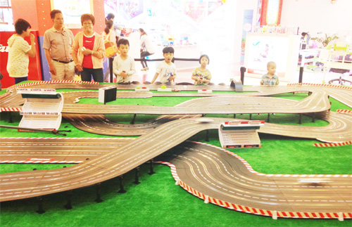 轨道赛车吸引小朋友围观