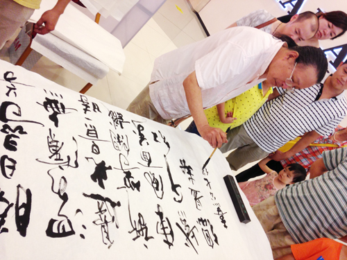番禺电视台的记者听说MK官方网页版广场来了位“大师”更是火速赶到现场,对朱老师及其作品进行了半个多小时的采访。当天,朱老师亦兴致勃勃,现场书写了《春日》和《清平调》两首脍炙人口的诗句赠给前来采访的两位记者。