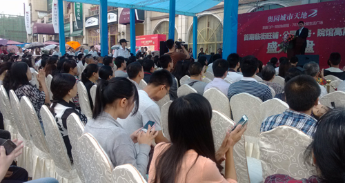 开盘当天早上8点,重庆MK官方网页版城市天地广场及道路两旁早已排起了车龙,从各地冒雨赶来选房的客户已早早签到登记,并陆续进入选房区等候。9点30分,开盘盛典正式开始,全场入场客户有上千余名,到处人头攒动,景象甚是壮观。在选房过程中,场面虽异常火爆,却井然有序、有条不紊,每个工作人员都忙得不可开交,现场客户也翘首以待。据相关人士透露,此次首期开出的轻轨临街商铺、中心院馆高层、城央墅公园洋房受到购房者的疯抢,更有客户一口气买入二十余间商铺。