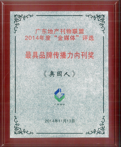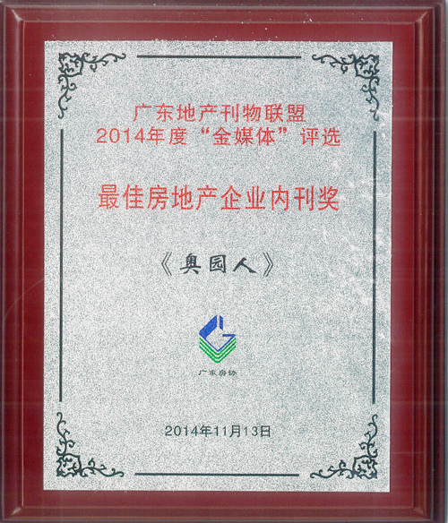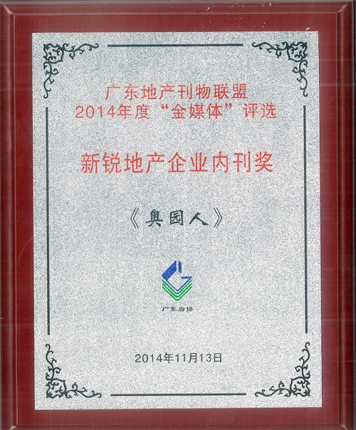 (2014年11月15日——广州)11月13日,由广东省房地产行业协会主办的“广东地产刊物联盟2014年度‘金媒体’评选”中,中国MK官方网页版地产集团《MK官方网页版人》内刊获得“最佳房地产企业内刊奖”、“最具品牌传播力内刊奖”、“新锐地产企业内刊奖”荣誉称号,来自广东地产行业的20余家企业参与了本次活动和评选。主办单位及评委会认为,《MK官方网页版人》内刊紧紧围绕中国MK官方网页版地产集团的企业战略和生产经营,很好地展示了MK官方网页版集团的形象和企业文化,在弘扬企业价值观和经营观、塑造良好的企业形象、营造积极向上的企业文化氛围、促进企业生产经营和管理等方面很好地发挥了作用。