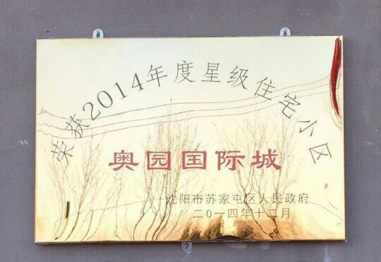 沈阳MK官方网页版国际城荣获“2014年度星级住宅小区”称号