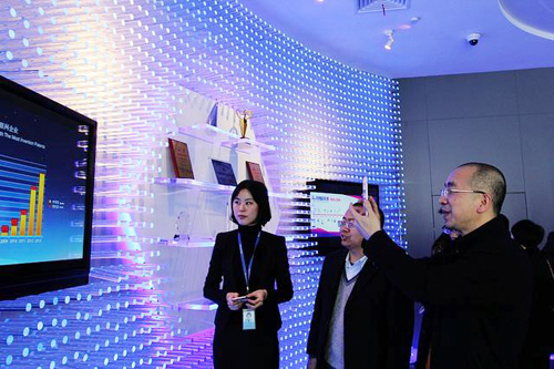 在腾讯智能展厅,工作人员向大家展示基于移动互联网的各种未来智能家居应用方案,以及基于腾讯地图的O2O解决方案等腾讯领先的服务技术平台。
