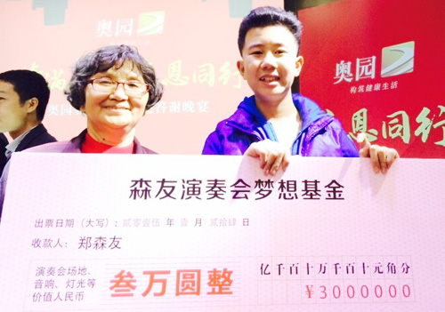 小业主森友获得演奏会梦想基金