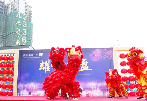 10点半,一场精彩的醒狮表演拉开了开盘活动的序幕,主持人开始叫号,准业主们凭序号陆续进入选房区选房。客户们或与家人商讨、或咨询置业顾问,现场气氛火爆。