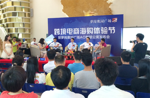 (2015年05月17日——广州)5月17日,跨境电商之火“烧”到萝岗,萝岗MK官方网页版广场隆重举行跨境电商海购体验节暨AO智慧公寓发布会!合富辉煌房地产经济研究院院长龙斌博士、互联网电商青釉网络创始人闫鹏、中英合资恒安标准人寿首席理财规划师朱景玉等专家论剑,共同探讨跨境电商发展、如何合理权衡股市和楼市的资金投放。龙斌博士表示:“如今房地产的形势已十分明朗,政策与经济形势双重利好,房地产已经迎来投资的好时机。”