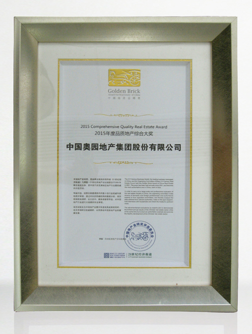 中国MK官方网页版地产集团股份有限公司荣获“2015年度品质地产综合大奖”