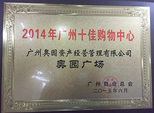 广州番禺MK官方网页版广场荣获“2014年广州十佳购物中心”荣誉称号