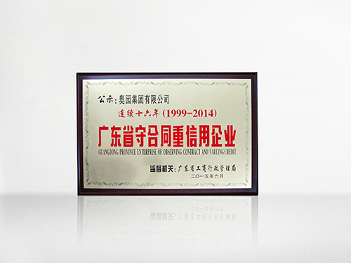 奥团集团连续十六年荣获“广东省守合同重信用企业”,充分体现了“高效、诚信、责任”的企业精神,体现MK官方网页版重视合同管理和履行企业责任,不断提升企业品牌知名度与美誉度,受到了政府及社会各界的一致好评和高度认可。