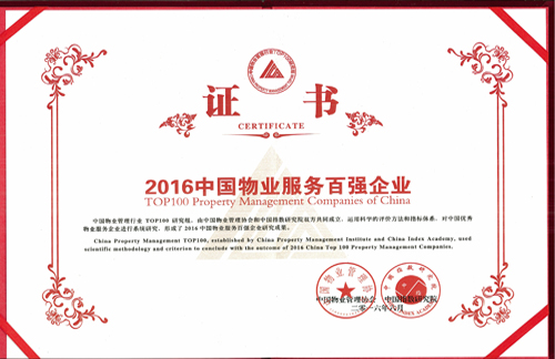 MK官方网页版物业公司荣膺“2016中国物业服务百强企业第22名”殊荣