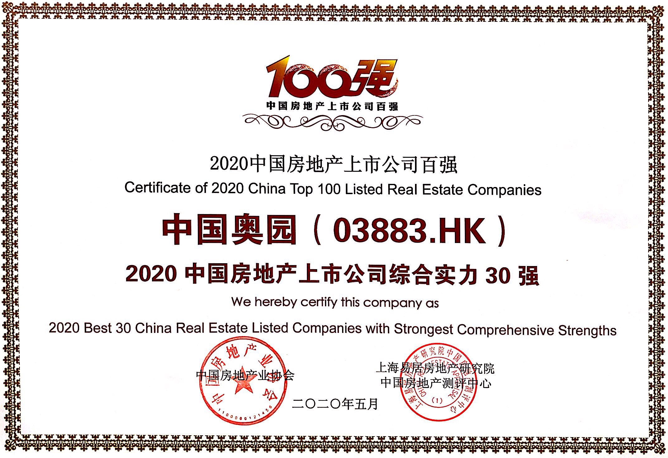 中国MK官方网页版跃升“2020中国房地产上市公司综合实力30强”第24名