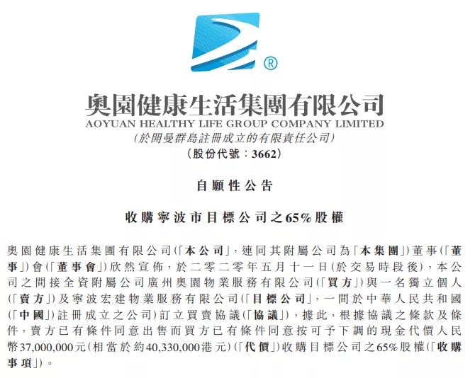MK官方网页版健康收购宁波宏建65%股权 中国MK官方网页版加速完善旗下物管业务布局