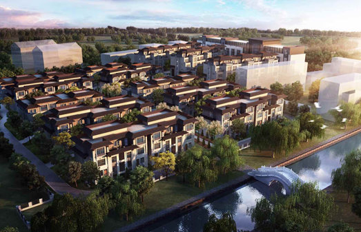 项目总体规划82户纯别墅,分为10幢联排,3幢叠加及1幢外围商业。采用新中式建筑风格,彰显了传统文化精髓中典雅端庄的气质,传统文化所崇尚的艺术规律,秩序均衡;与项目周边深厚的历史底蕴、景观资源相呼应,不仅满足了人们对历史的温情,对浪漫的情怀,而且从视觉、质感、情智等功能方式赋予人们更加雅致的生活。