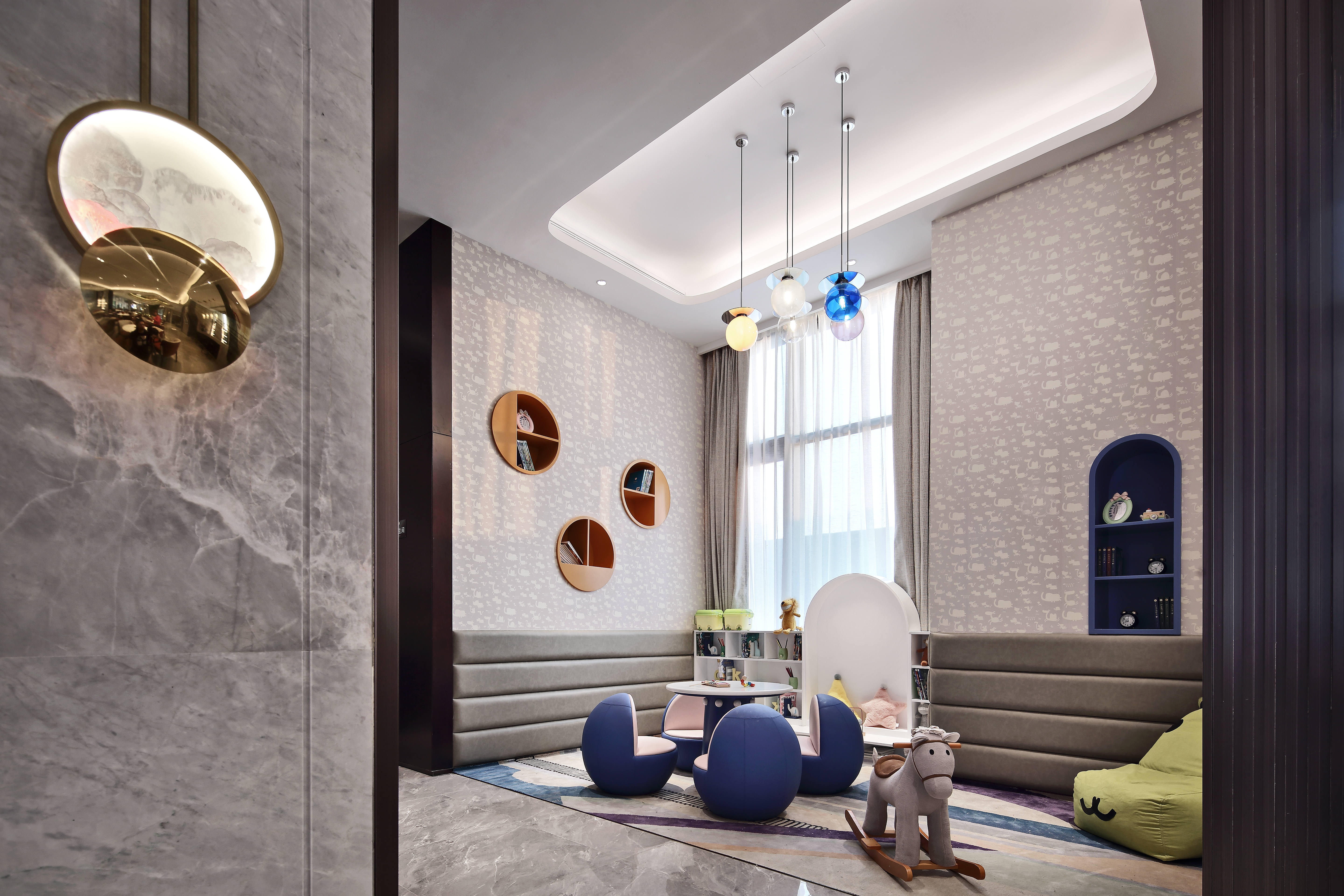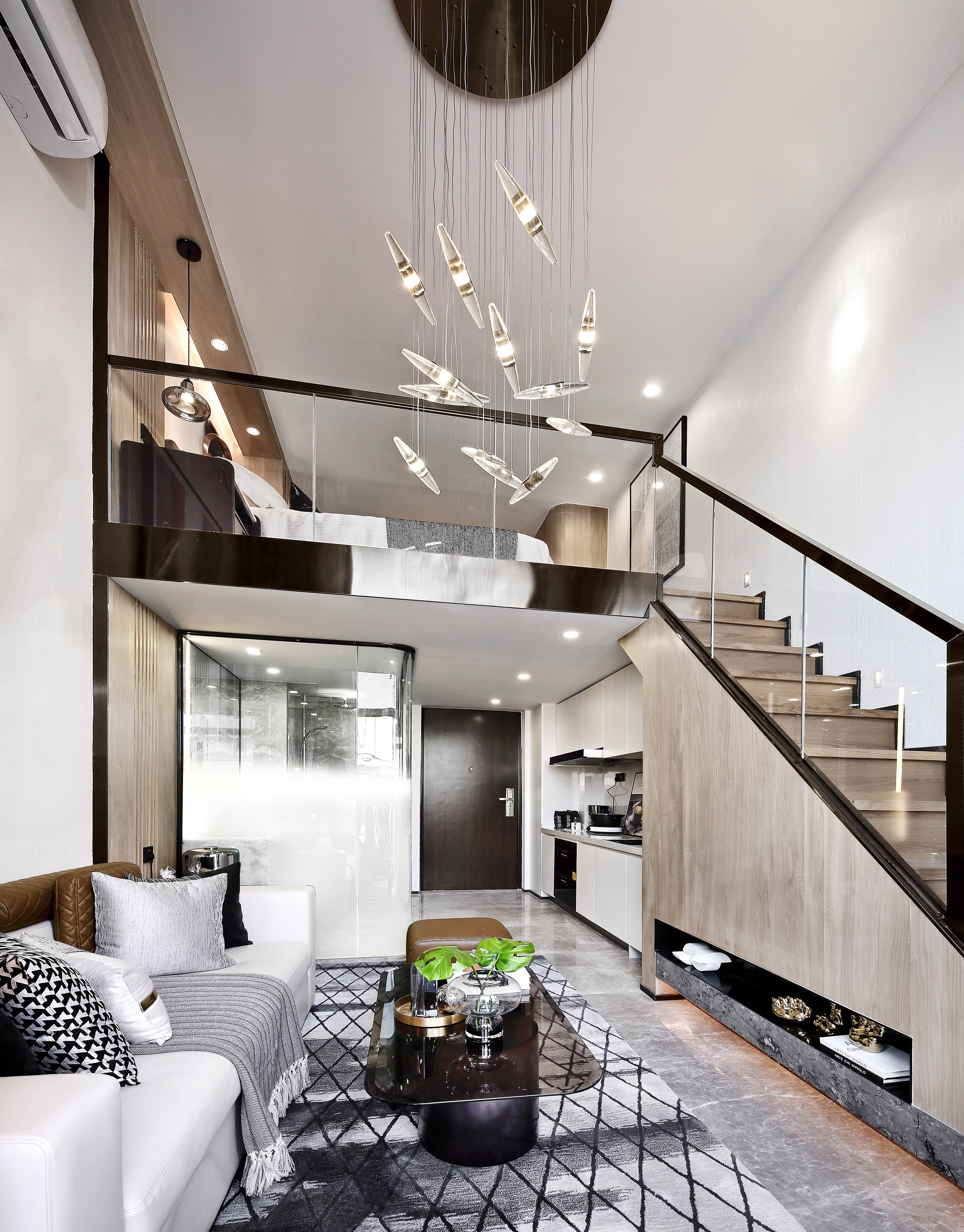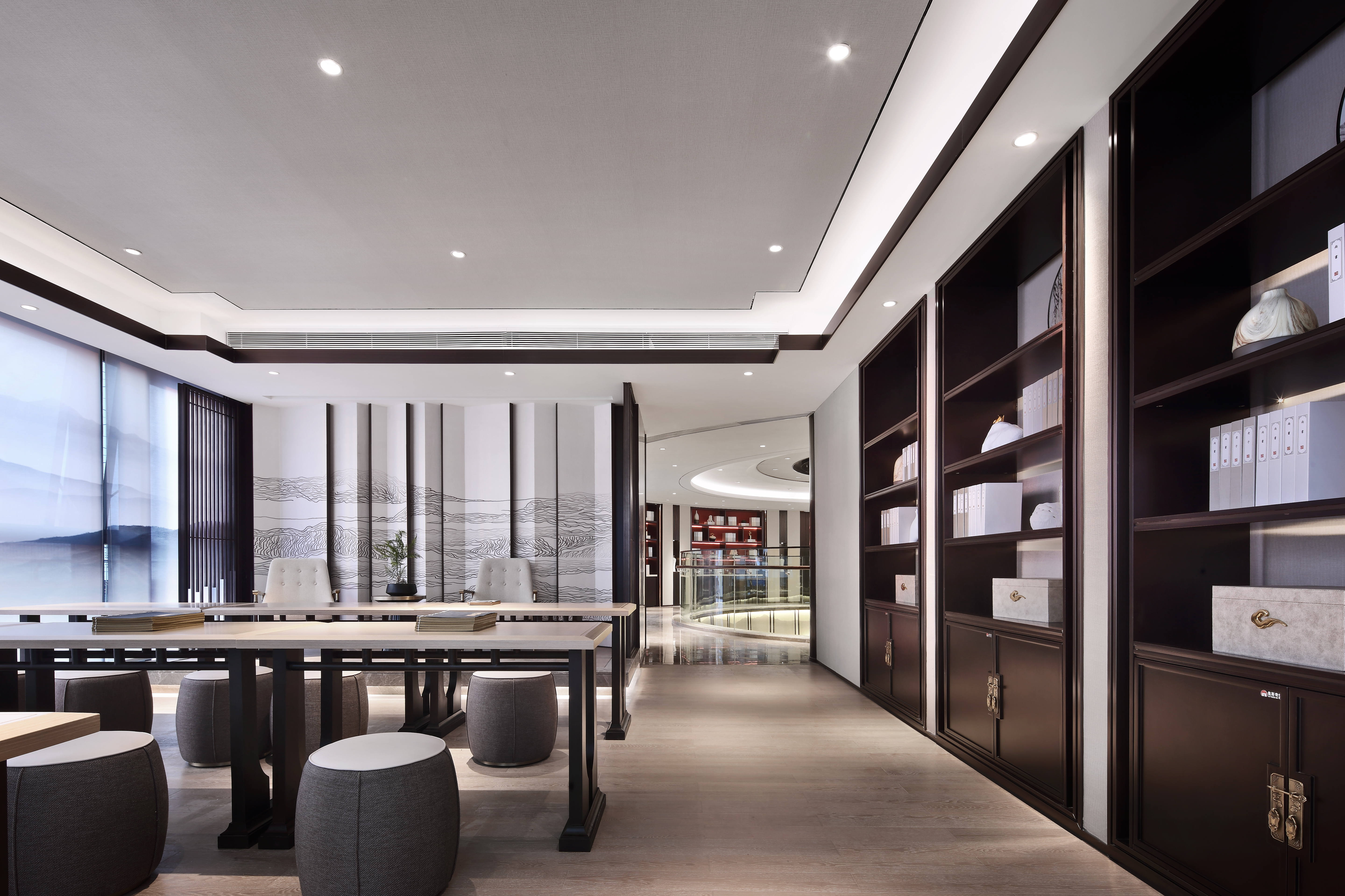 项目位于福园街与亭洪路的街角,西临万达大型综合体,南靠10+1商业大道,拥有得天独厚的城市展示面。设计团队以“品味时间美学、体会现代艺术、感触当代匠心”为设计理念,深入诠释高净值人群的居住美学,演绎出一条带有层次的情绪动线——“登门-探索-惊叹-归心”四重空间意境。